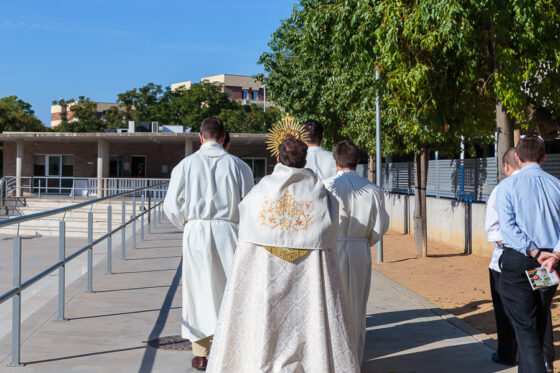 Por la tarde, este encuentro vivirá su parte celebrativa con la procesión eucarística de la Custodia de Arfe, la Virgen de la Fuensanta y los Santos Acisclo y Victoria, acompañado por banderas y estandartes de Hermandades y Cofradías, asociaciones, movimientos y secciones de ANE y ANFE de toda la Diócesis. Partirán desde la Parroquia de Beato Álvaro de Córdoba a las 18:30 horas, rumbo a la plaza de toros, donde se congregarán siete mil personas para recibir a Jesús Sacramentado y participar tanto en la celebración de la misa presidida por el Obispo como en un festival de música católica con la intervención de Pablo Martínez, Carlos y Carito y Jesús Cabello que pondrán el broche final al encuentro.