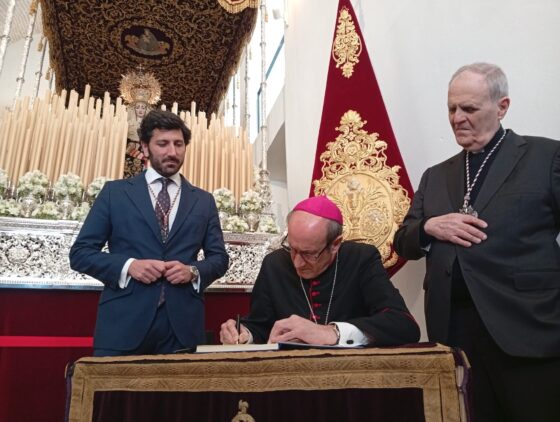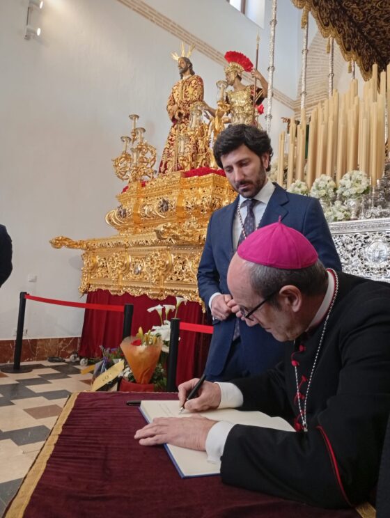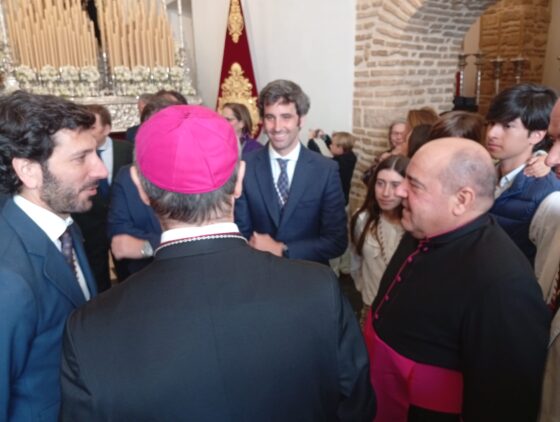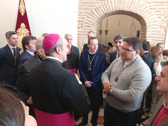La Hermandad de la Sentencia ha acogido al prelado horas antes de su salida procesional este Lunes Santo