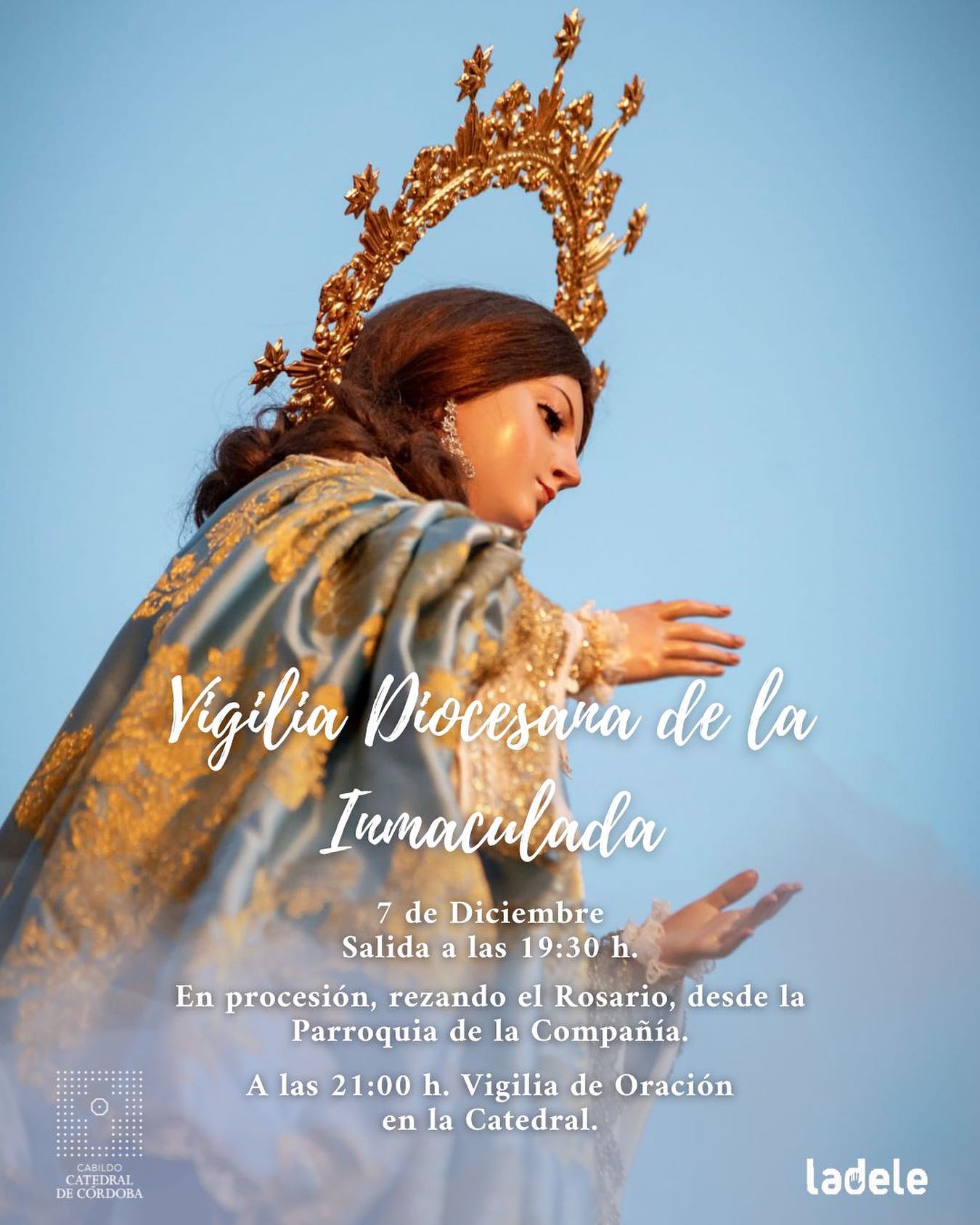Previamente, la imagen de la Inmaculada de la Delegación Diocesana de Juventud realizará una procesión desde la parroquia del Salvador y Santo Domingo de Silos (La Compañía) hasta el templo principal de la Diócesis, acompañada por los jóvenes de la “dele”, miembros de Pastoral Vocacional y de las Hermandades y Cofradías. El recorrido, que se iniciará a las 19:30 horas, pretende ser una manifestación pública de fe y una preparación espiritual para la Vigilia. Transitará desde la Plaza de la Compañía, continuando por Santa Victoria, Juan Valera, Ángel de Saavedra, Blanco Belmonte, hasta llegar a la Plaza de la Agrupación de Cofradías para atravesar por Conde y Luque, Deanes, Judería, Torrijos, Corregidor Luis de la Cerda y Magistral González Francés, para finalmente entrar en la Puerta de Santa Catalina y culminar su recorrido en la Santa Iglesia Catedral.
