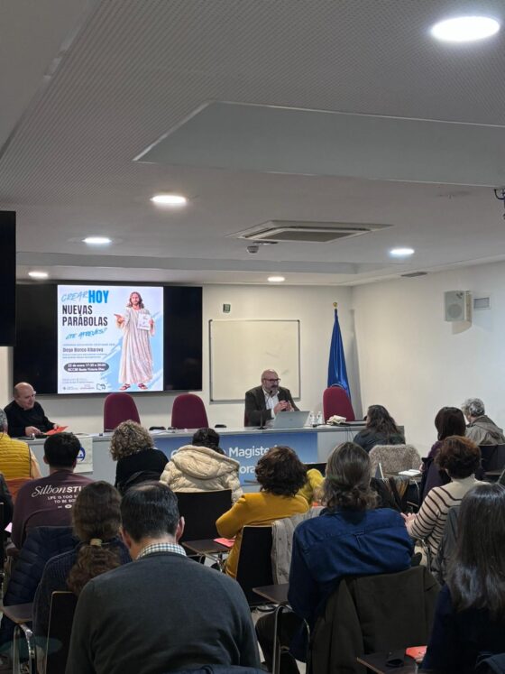 Diego Blanco Albarova fue el encargado de impartir la ponencia central, titulada “Crear nuevas parábolas hoy”, una propuesta que invitó a los participantes a profundizar en el valor de la narrativa como herramienta evangelizadora y pedagógica. Siguiendo el estilo de Jesús, que educaba contando historias capaces de tocar el corazón, se animó a los educadores a aprender a comunicar la fe desde relatos que conecten con la vida real de niños, adolescentes y jóvenes.