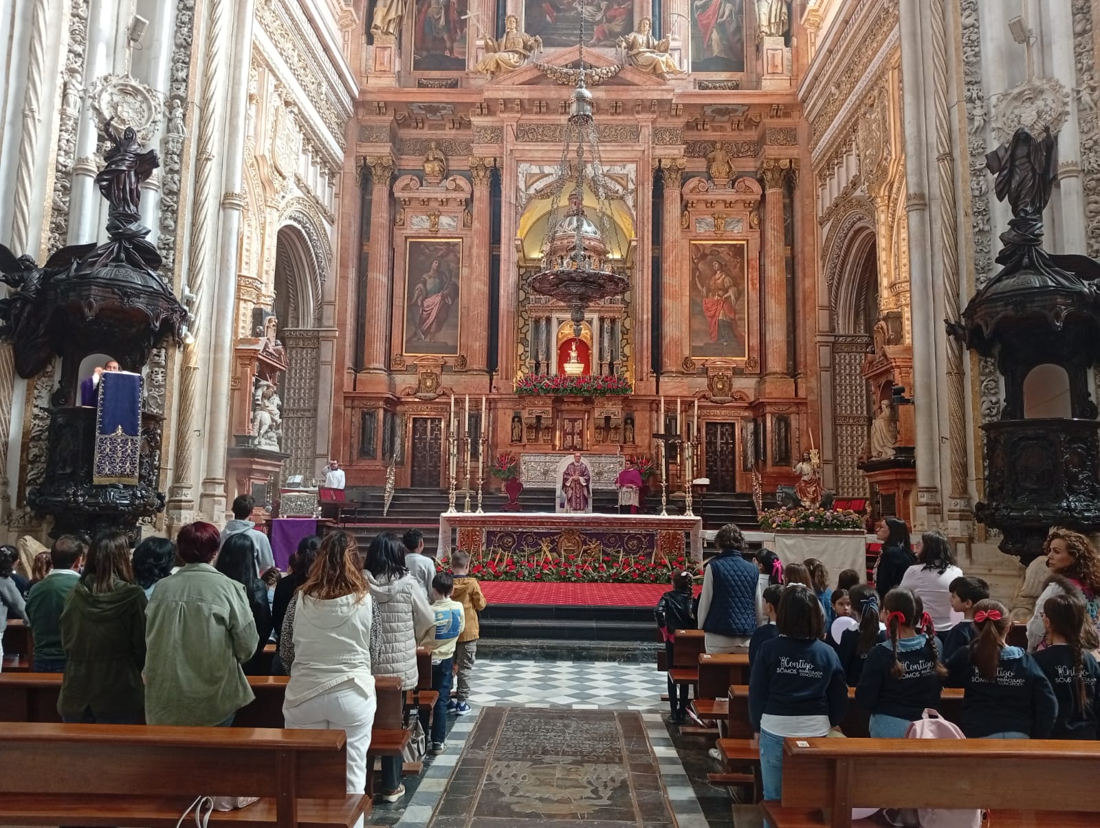 Portando la imagen de la Borriquita, un centenar de niños llegaron al templo principal de la Diócesis, donde fueron recibidos por monseñor Jesús Fernández, para celebrar la santa misa.