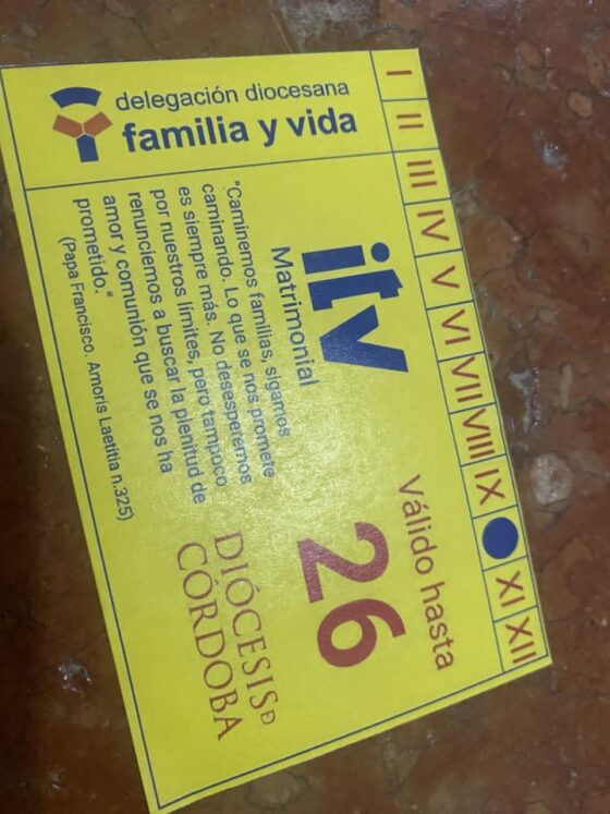 La Delegación diocesana de Familia y Vida ha puesto en marcha al inicio de este curso la ITV matrimonial, “un chequeo” para profundizar en la importancia del matrimonio y la vida en pareja. Un importante grupo de matrimonios ha pasado en esta ocasión la ITV. La cita ha tenido lugar en el Monasterio de San José y Santa Teresa en Bujalance, la mañana del domingo, 19 de octubre. Este proyecto se puso en marcha desde la Delegación de Familia pensando en matrimonios jóvenes, dentro de los diez primeros años de matrimonio, no obstante siempre han podido participar todos aquellos matrimonios de la Diócesis que lo hayan deseado.