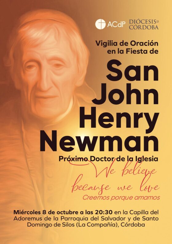 Como anticipo de estas jornadas y coincidiendo con la fiesta litúrgica de San John Henry Newman, que se celebra el próximo 9 de octubre, se ha organizado una Vigilia de Oración la víspera, el miércoles 8 de octubre a las 20:30 horas, en la Capilla del Adoremus de la Parroquia del Salvador y de Santo Domingo de Silos (La Compañía), Córdoba.