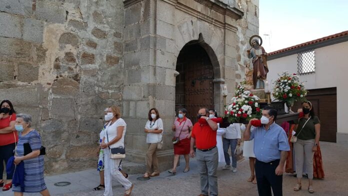 El titular de la parroquia procesionó por las calles de la localidad cumpliendo con las medidas sanitarias
