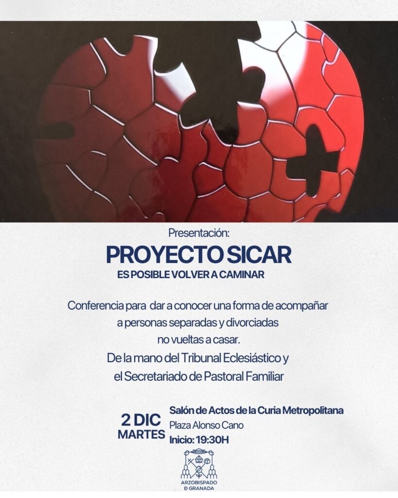 El día 2, en la Curia Metropolitana (Plaza Alonso Cano), a las 19:30 horas, se presenta el Proyecto SICAR, una iniciativa pastoral para acompañar a personas separadas y divorciadas no vueltas a casar. En la Archidiócesis, este Proyecto se ofrece de la Pastoral Familiar en una acción conjunta con el Tribunal Eclesiástico.
