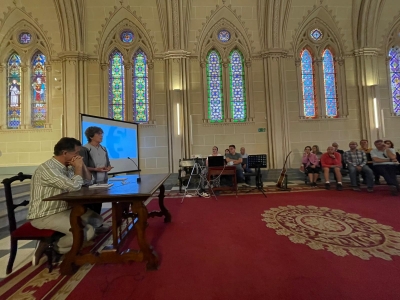 Finalmente se compartió la comida y después otro matrimonio nos ofreció una preciosa reflexión sobre el don de la Cruz desde el contexto del santo lugar martirial donde estábamos. Como colofón de la jornada, don Antonio, el párroco nos explicó el origen histórico de la abadía y nos acompañó por los santos lugares, terminando en el coro de la Iglesia con el rezo del Santo Rosario.