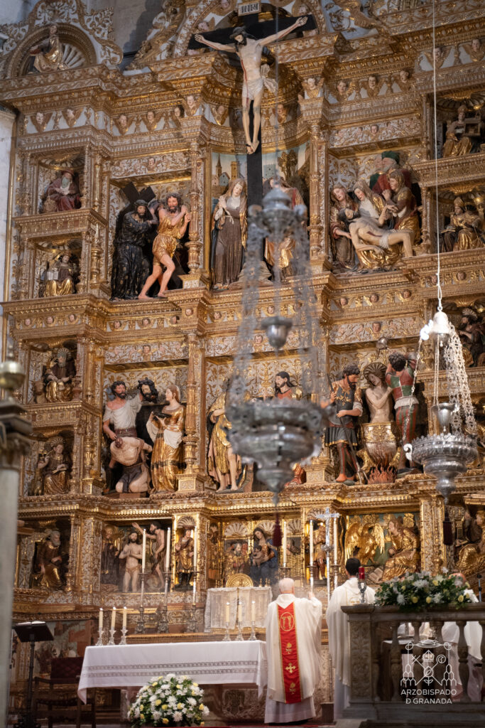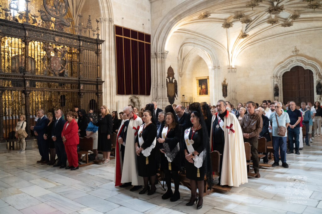 El capellán mayor, D. Manuel Reyes, ha presidido la Eucaristía, que ha estado concelebrada por los miembros del Cabildo Real y del Cabildo Metropolitano de la Catedral de Granada, junto a su deán.