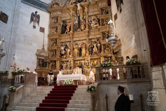 El capellán mayor, D. Manuel Reyes, ha presidido la Eucaristía, que ha estado concelebrada por los miembros del Cabildo Real y del Cabildo Metropolitano de la Catedral de Granada, junto a su deán.