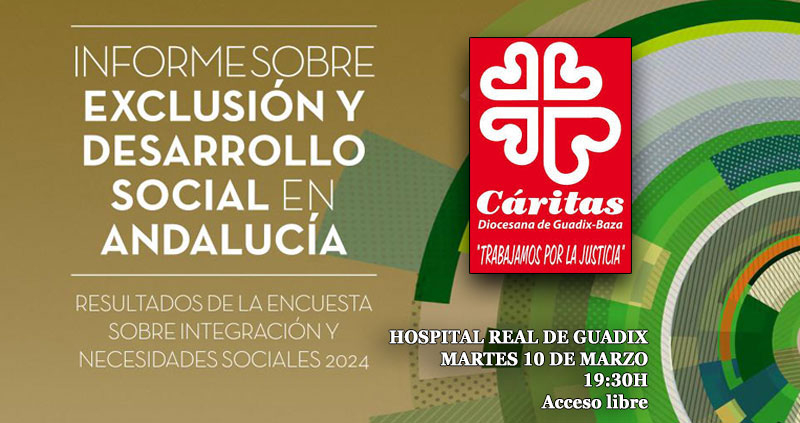 El martes 10 de marzo, a las 19:30h, en el Hospital Real de Guadix, Cáritas presentará el Informe FOESSA sobre Exclusión y Desarrollo Social en Andalucía, con acceso libre para todos los que quieran asistir.