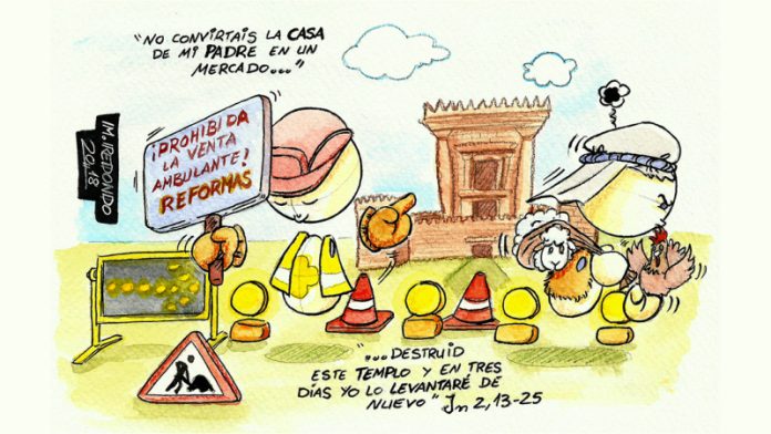 El apego a los bienes materiales, especialmente al dinero, han corrompido el espacio sagrado y han vaciado de sentido las ofrendas y sacrificios de animales: la Casa de Dios se ha convertido en un mercado. Esta percepción que tiene Jesús, como buen judío, le duele en lo más profundo y hace que reaccione, para hacer visible su indignación, expulsando a quienes le ofenden con estos comportamientos.
