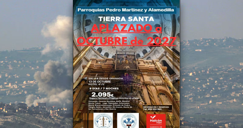 Así lo ha hecho saber el párroco, juan Diego Tapia, a través de las redes sociales. Ante la incertidumbre que genera el conflicto y para garantizar que se pueda hacer con seguridad, se ha decidido aplazar el viaje hasta octubre de 2027. Estaba previsto hacerlo en la primera quincena de este mes de octubre, pero ante la incertidumbre, se aplaza para no tener que hacer reservas, y adelantos de pagos, y que después no se pueda realizar.