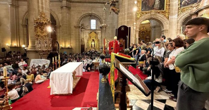 La Catedral de Guadix acogió a unos 650 chicos y chicas de 5º y 6º de Primaria de todos los colegios que hay en la diócesis de Guadix, públicos y concertados. En realidad, se dieron cita los alumnos de la asignatura de Religión, para pasar un día de convivencia, conocer la Catedral y, sobre todo, vivir el Año Jubilar de la Esperanza y pasar, también ellos, por al Puerta Santa.