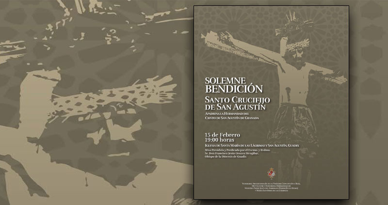 El obispo de Guadix, D. Francisco Jesús Orozco, bendecirá el Santo Crucifijo de San Agustín, en la Hermandad accitana de la Virgen de las Lágrimas. Será el domingo 15 de febrero, en la iglesia de San Agustín, a las 7 de la tarde, en una celebración de la Eucaristía abierta a todos los hermanos, a los que la hermandad anima a asistir.