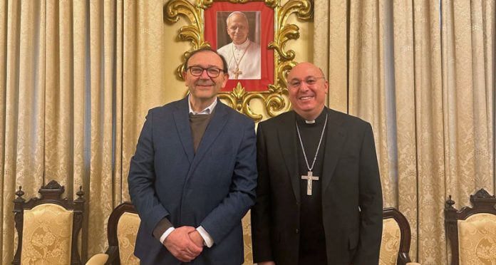 El pasado 2 de febrero, el obispo de Guadix, don Francisco Jesús Orozco, recibió en el Obispado la visita del profesor Manuel Fandila Sánchez Hurtado, natural de Guadix y especialista en comunicación institucional, actualmente docente en la Pontificia Universidad de la Santa Cruz, en Roma.