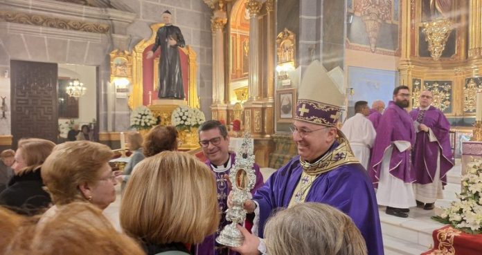 Monseñor Francisco Jesús Orozco ha sido el segundo de los predicadores del triduo en honor del beato Salvador Valera Parra, conocido como “Cura Valera”. Fue el miércoles 25 de febrero, en Huércal Overa, de la vecina diócesis de Almería, localidad natal del beato y centro de la devoción a este sacerdote que fue beatificado el pasado 7 de febrero. El obispo de Guadix presidió la celebración, predicó y dio a besar la reliquia del beato al terminar la Eucaristía.