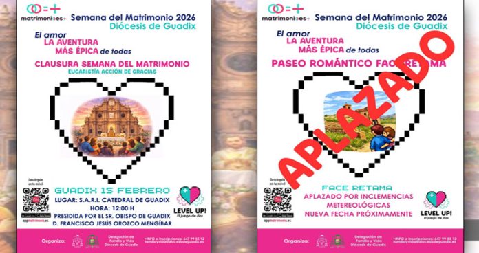 Sí se mantiene la Misa de clausura de la Semana del Matrimonio, prevista para el domingo 15 de febrero, a las 12 de la mañana, en la Catedral. La presidirá el obispo diocesano y será una oportunidad para dar gracias a Dios por el amor, el matrimonio y la familia.