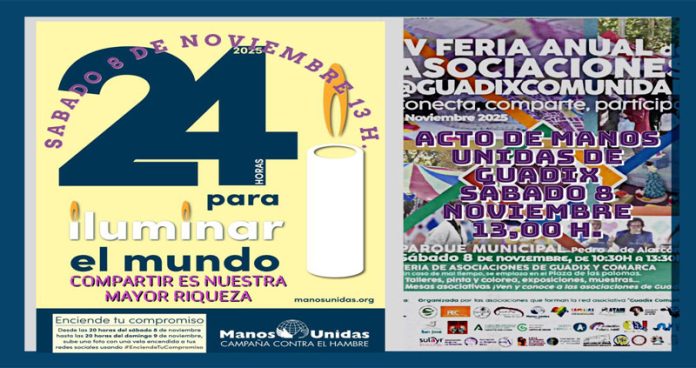 En el marco de la IV FERIA ANUAL DE ASOCIACIONES @GUADIXCOMUNIDAD, que se va a celebrar el próximo sábado 8 de noviembre, en el Parque Municipal de Guadix, Manos Unidas de Guadix realizará su tradicional y sencillo acto de ENCIENDE TU LLAMA. Será a las 13 horas, con la lectura del manifiesto de “24 horas para iluminar el mundo”.