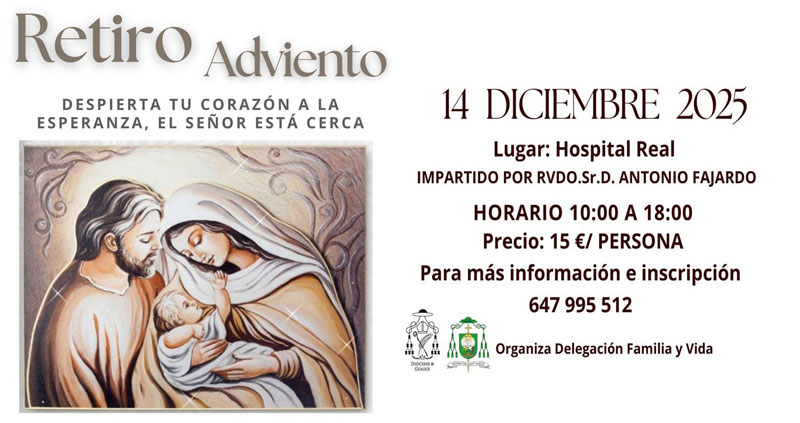 El domingo 14 de diciembre se va a celebrar un retiro de Adviento para familias de toda la diócesis, en Guadix, aunque está abierto a todos los que quieran participar. Será en el Hospital Real de la Caridad, desde las 10 de la mañana hasta las 6 de la tarde, y está organizado por la delegación de Familia y Vida.