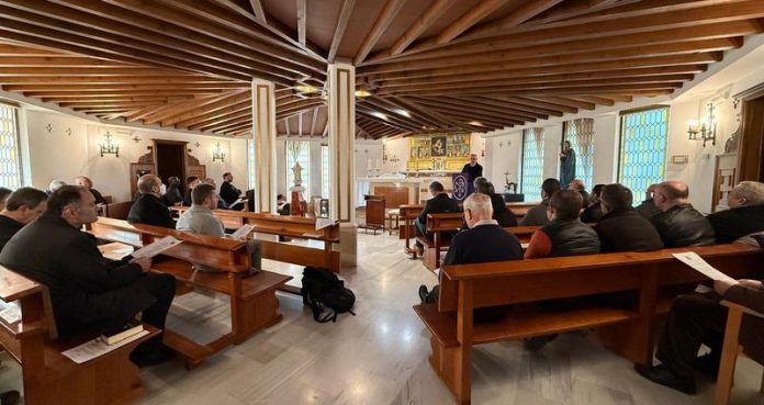 El presbiterio de la diócesis de Guadix vivió, el miércoles 18 de marzo, un retiro de Cuaresma junto a su obispo, D. Francisco Jesús Orozco, en un ambiente de oración, recogimiento y renovación espiritual propio de este tiempo litúrgico de preparación para la Semana Santa.