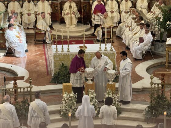 El crisma que hoy consagraremos nos lo recuerda. Con él fueron ungidos los fieles en el Bautismo: todos participan de la dignidad sacerdotal de Cristo. Con él son ungidas nuestras manos: no para apropiarnos de la gracia, sino para servirla, para derramarla, para bendecir. Ungidos para construir la unidad en la caridad.