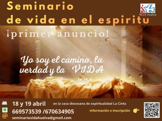El próximo 18 y 19 de abril tendrá lugar en el Santuario de Nuestra Señora de la Cinta, patrona de la ciudad de Huelva, un nuevo Seminario de Vida en el Espíritu, organizado por la Renovación Carismática Católica. Esta iniciativa está abierta a jóvenes y adultos que deseen vivir un tiempo de oración, formación y encuentro personal con Dios.