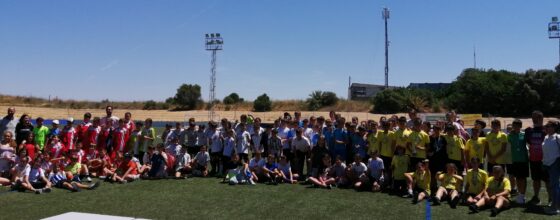 Mañana de fútbol solidario en el campo federativo de La Orden este jueves 11 de mayo. Tras la finalización del cuadrante de partidos, los alumnos de los diferentes centros finalistas también tuvieron la oportunidad de participar en una competida prueba de atletismo con medallas para los tres primeros clasificados en categoría femenina y masculina.