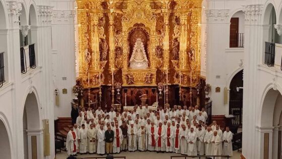 La jornada culminó con la peregrinación a la Ermita de El Rocío, donde los vicarios participaron en la celebración de la Eucaristía, presidida por Mons. Santiago Gómez Sierra, obispo de Huelva, en un clima de oración ante la Santísima Virgen del Rocío. Posteriormente, compartieron un tiempo de convivencia con la cena en la aldea.