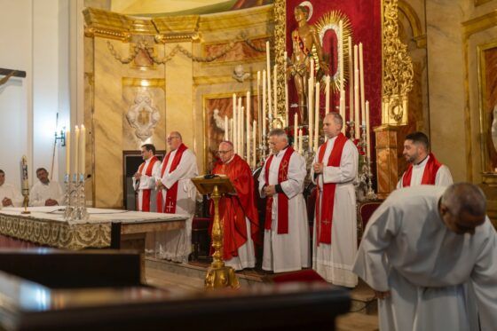 La ciudad de Huelva se reunió en la parroquia de San Sebastián para celebrar, en un clima profundamente sobrio y orante, la Memoria Litúrgica de su patrón. El templo se encontraba abarrotado de fieles y representantes institucionales que quisieron acompañar a la comunidad cristiana en una Eucaristía marcada por el dolor compartido y la esperanza evangélica.