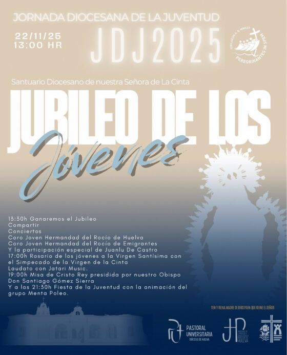 La Jornada Diocesana de la Juventud (JDJ) 2025 se presenta como uno de los momentos centrales del calendario pastoral de la Diócesis de Huelva. Inspirada en el lema “No aspiréis a nada menos que a la santidad”, tendrá lugar en la Solemnidad de Cristo Rey, uniéndose así al ritmo de la Iglesia universal y al camino del Año Jubilar convocado por el Papa Francisco bajo el lema “Peregrinos de esperanza”.