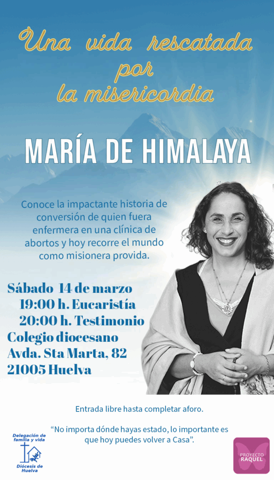 El próximo sábado, 14 de marzo, el Colegio Diocesano “Sagrado Corazón de Jesús” de Huelva capital acogerá un encuentro con María de Himalaya, organizado por la Delegación Diocesana para la Familia y la Vida. La jornada dará comienzo a las 19:00 horas con la celebración de la Santa Misa y, a continuación, tendrá lugar el testimonio de la invitada.