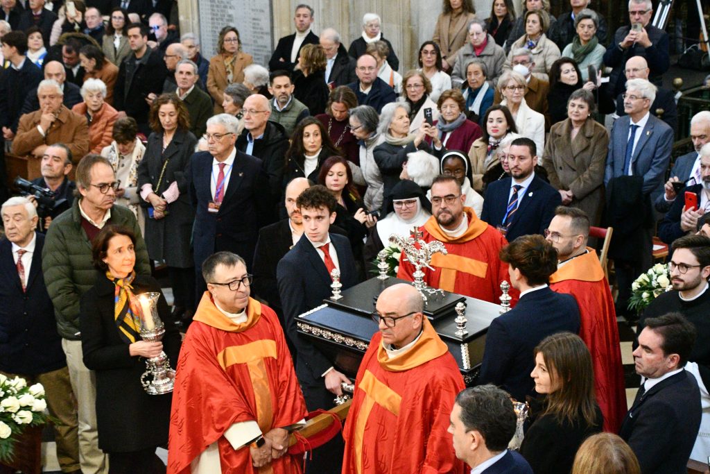 Cuatro sacerdotes portaban la urna de las reliquias, acompañada por familiares de los mártires, así como por cuatro contemplativas de las Clarisas de Jaén que acompañaban el cortejo con flores y familiares de los mártires, con velas. En el presbiterio se ha depositado la urna, con los restos de algunos de los mártires, como símbolo tangible de su entrega hasta el extremo. En este momento, se ha interpretado el Himno de los Mártires de Jaén “Cual gotas del Santo Rostro”, con letra del sacerdote D. Manuel Cámara y música del compositor marteño Fernando J. Camacho.