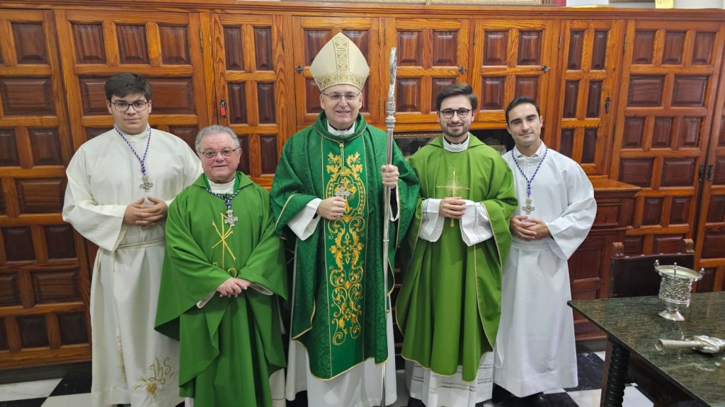 Don Sebastián, después de saludar a los asistentes, quiso hacer referencia al motivo que lo llevaban a presidir la celebración: “En este día, desde esta parroquia de san Bartolomé de Jaén y a través de Canal Sur, damos gracias a Dios porque hace 25 años que, esta Cofradía tan señera de Jaén, recibió el título de “Sacramental”. Siendo esta Hermandad una escuela de adoración y fraternidad, memoria viva de Cristo que se entrega, faro que orienta a un pueblo hacia la Eucaristía, fuente y culmen de toda la vida cristiana”, para añadir, “Un reconocimiento que no se queda sólo en un título, sino que se confirma con rodillas dobladas, con manos abiertas y con una vida que sabe arder delante del altar. Un cuarto de siglo sellado por la fidelidad, la adoración y el servicio a Cristo en el Misterio de su entrega”.