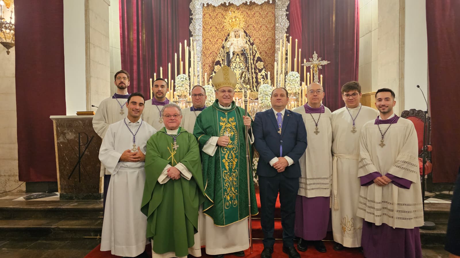 En esta ocasión, el vigésimo quinto aniversario del título de Sacramental de la cofradía de la Expiración y el trigésimo de la bendición de la imagen de la Virgen de las Siete Palabras fueron el motivo de la celebración, que fue presidida por el Obispo de Jaén, Monseñor Chico Martínez.