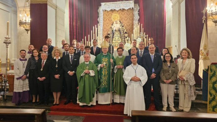 Para terminar, quiso poner bajo el manto de la Virgen de las Siete Palabras a los cofrades y miembros de la parroquia, así como a todos los espectadores de Canal Sur.