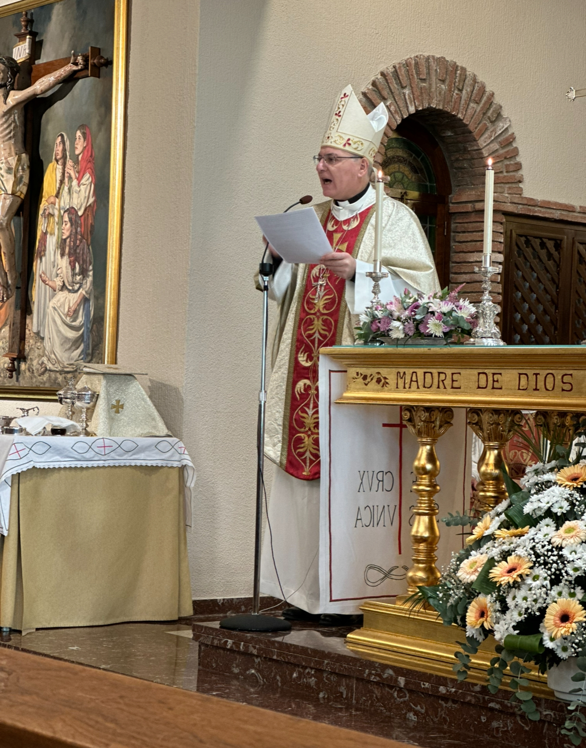 El centro de la visita fue la emotiva Misa de Acción de Gracias oficiada por nuestro Obispo, Don Sebastián Chico Martínez. En una homilía profundamente inspiradora, D. Sebastián enfatizó el carácter fundacional del colegio, reconociendo el esfuerzo de quienes hicieron posible este sueño y los que hoy lo mantienen. «Estamos de celebración por el 50 aniversario de Guadalimar – Altocastillo,» comenzó, destacando que lo que se celebra es «una historia viva de tantos hombres y mujeres que encontraron aquí y encontráis aquí una gran familia».