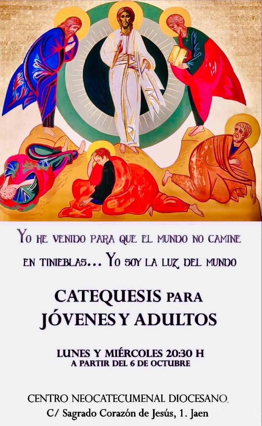 El Camino Neocatecumenal impartirá unas charlas catequéticas dirigidas a jóvenes y adultos: «Yo he venido para que el mundo no camine en tinieblas… Yo soy la luz del mundo».