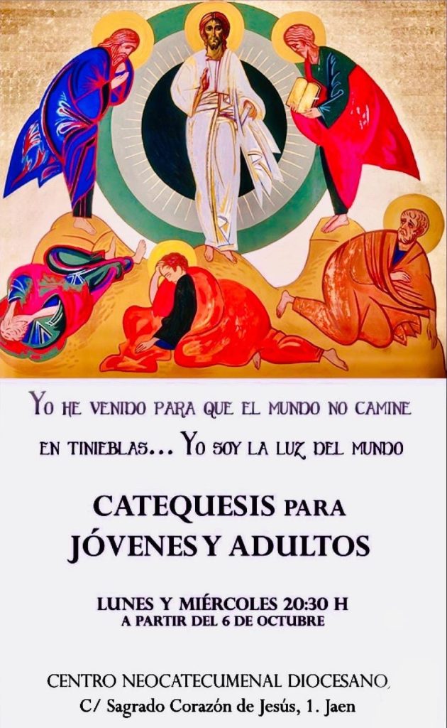 A partir de hoy, 6 de octubre, comenzaremos con las charlas catequéticas que tendrán lugar, D.m., en el Centro Neocatecumenal Diocesano de Jaén, ubicado en la calle Sagrado Corazón de Jesús Nº 1 en Jaén.