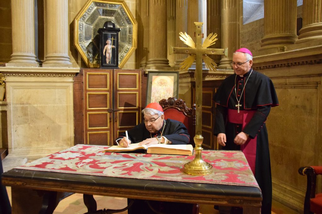 El Prefecto del Dicasterio para la Causa de los Santos firmó el libro de honor del templo Catedral, bajo la atenta mirada del Prelado jiennense y después, junto a los capitulares, se hizo una foto de familia.