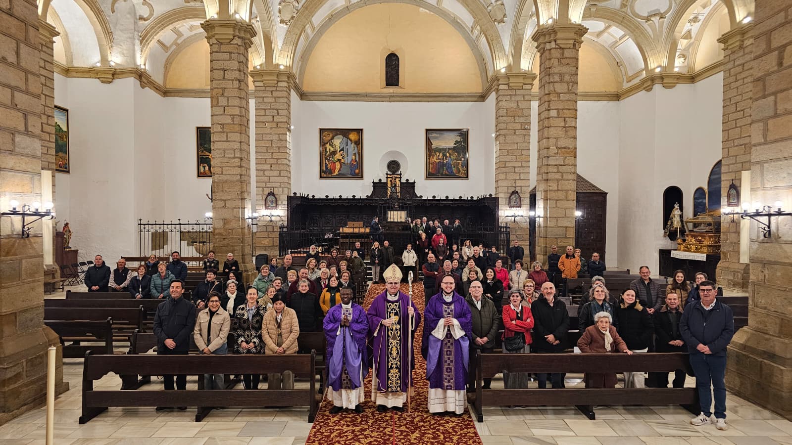 En un ambiente de alegría y comunión, se felicitó también al secretario del Obispo con motivo de su cumpleaños, y numerosos fieles se acercaron para saludar personalmente a Monseñor Sebastián Chico, poniendo así un broche cercano y familiar a una jornada inolvidable.