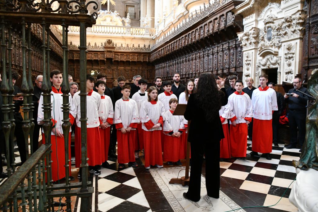 Tras la celebración eucarística, la Capilla Musical Los Seises, junto a los fieles allí presentes, pudieron venerar el Santo Rostro en la Capilla Mayor.