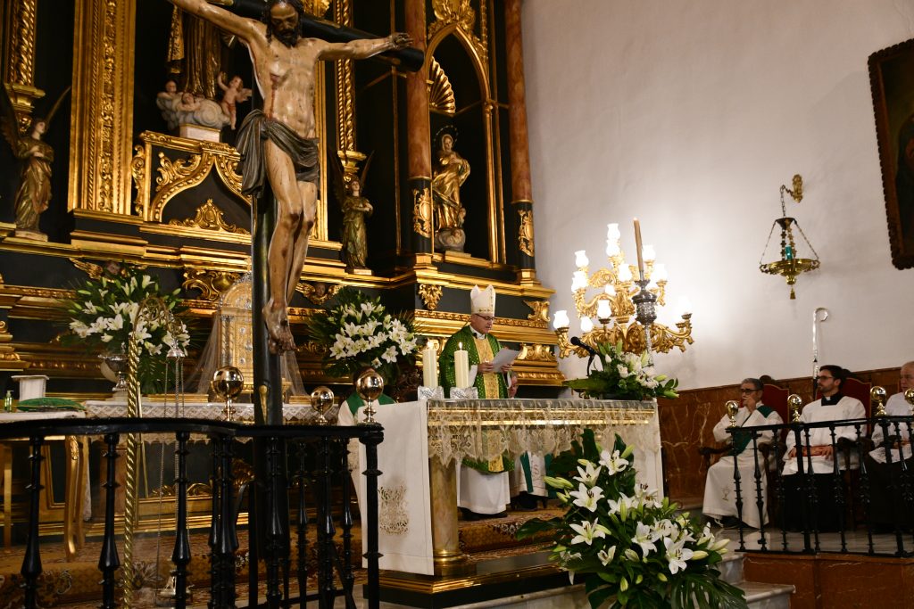 Al término de la celebración jubilar, Don Sebastián Chico mostró su preocupación por la situación de los temporeros que ya están llegando a la provincia ante la próxima campaña de recolección de la aceituna. «Desde aquí hasta mitad de noviembre es una intranquilidad que como Iglesia tenemos. ¿Dónde van a dormir? ¿Dónde van a pernoctar esta noche? Es algo que me preocupa. Desde aquí quiero que sea un grito profético. El profeta denunciaba las distintas situaciones que no hacían justicia al ser humano. Yo también lanzo este grito ante una realidad que nos preocupa», subrayó.