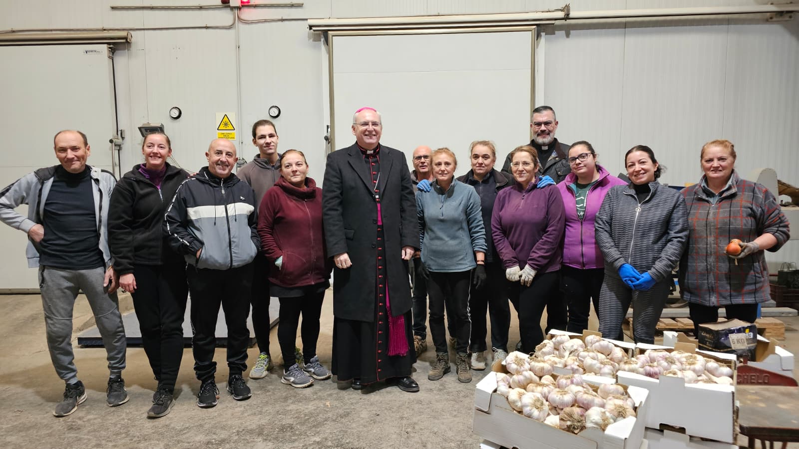 La agenda continuó con la visita a una empresa de ajos, uno de los pilares de la economía local. Don Sebastián mostró gran interés al ser la primera vez que acudía a una de estas empresas envasadoras de ajos y cebollas. También se interesó por las condiciones de trabajo, la realidad de los trabajadores y la importancia de estas empresas para el tejido productivo del pueblo.