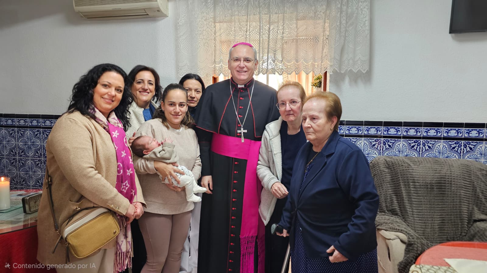 Poco después, retomó la visita a otra casa, la de Carmen y su hija María Jesús, prolongando así el recorrido iniciado horas antes. En esta ocasión se reunieron cuatro generaciones de la familia para dar la bienvenida a Don Sebastián y orar todos juntos por todos los mayores y enfermos de la localidad.
