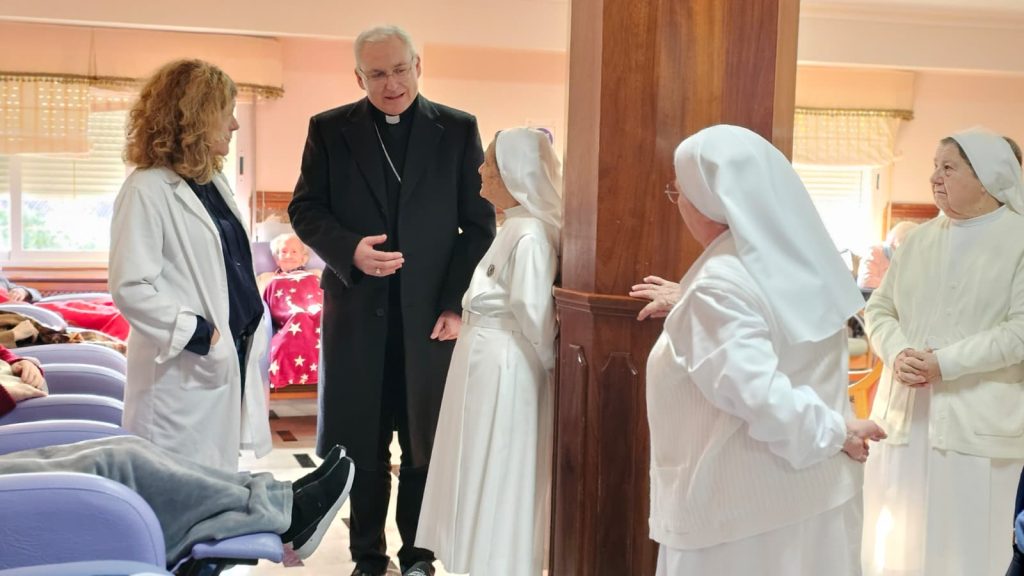 La tarde de ayer, 26 de noviembre, Don Sebastián comenzó con la visita a la residencia de mayores atendida por la comunidad de las Madres de los Desamparados y San José de la Montaña. El obispo recorrió las instalaciones, saludó a los residentes uno a uno y agradeció a las religiosas y a los trabajadores su dedicación paciente y fiel.