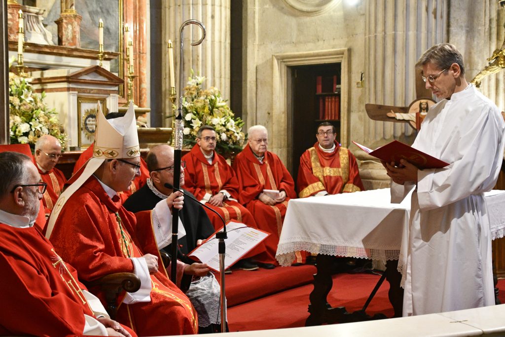 Antes de concluir su predicación se ha dirigido al aspirante al diaconando permanente, Miguel Ángel para decirle, “hoy la Iglesia te admite al camino del diaconado permanente. No es aún la ordenación, pero sí es un momento serio y luminoso: la Iglesia te mira, discierne contigo, y te dice: ‘Sigue adelante; el Señor puede estar llamándote por este camino’.” A lo que el Obispo añadió, esto, “Significa dejarte configurar con Cristo siervo: aprender su estilo, su mansedumbre fuerte, su cercanía. Significa crecer en una espiritualidad muy real: Eucaristía, Palabra, caridad, y una obediencia que no es servilismo, sino amor a la comunión. Significa aceptar que habrá días de consolación y días de cansancio, y que la fidelidad se decide muchas veces en lo pequeño: en la perseverancia, en el tiempo regalado, en la escucha, en la discreción. Pero el Señor vuelve a decirte: “El Espíritu hablará en ti”. Y no lo olvides: a veces, como pasó tras la muerte de Esteban, lo que parece derrota se convierte en misión: la Iglesia, empujada por la dificultad, sale y anuncia con más fuerza.