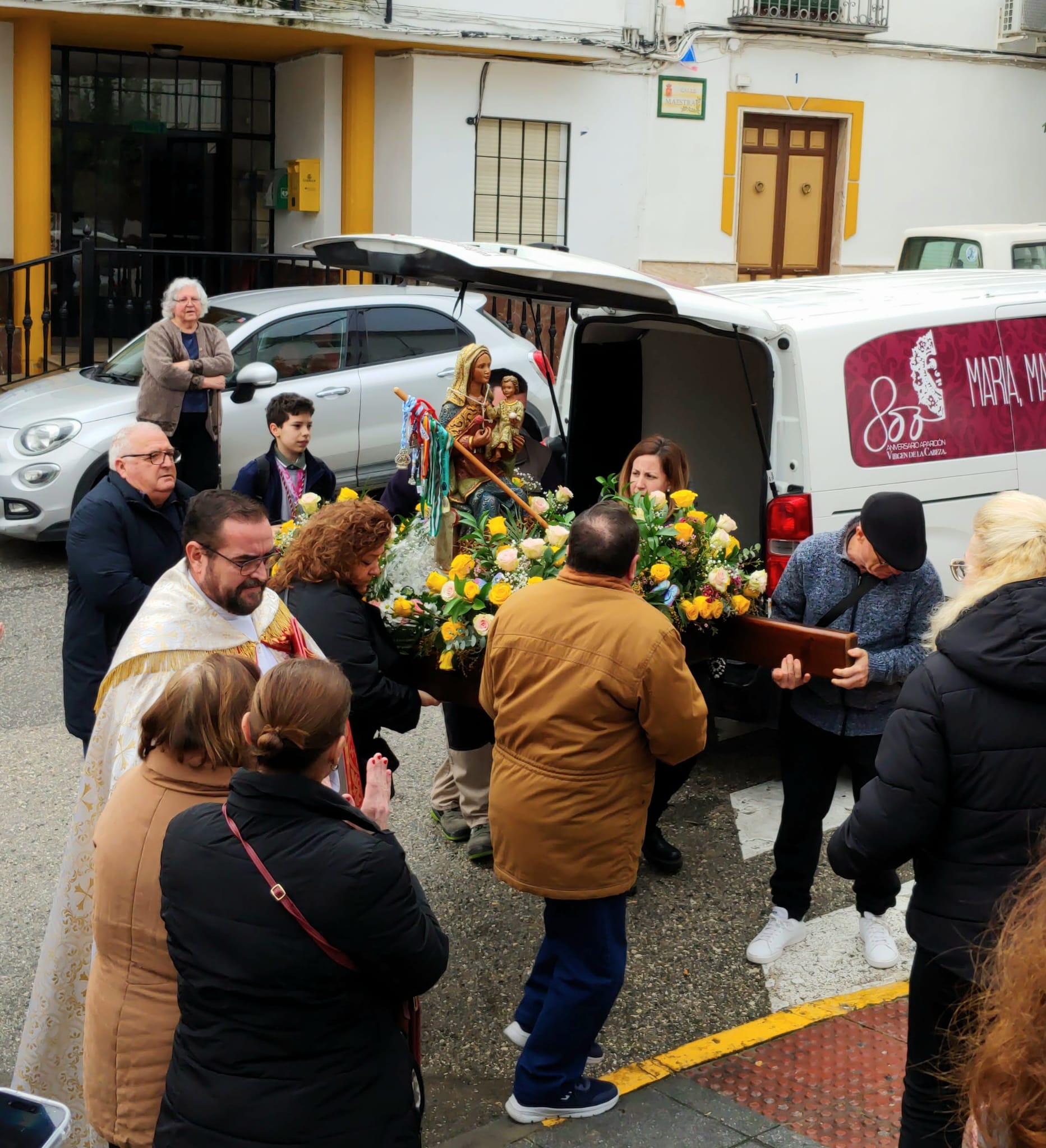 La mañana del 9 de febrero amaneció plúmbea y la niebla dificultaba el tránsito por la carretera. Desde Higuera de Calatrava, la furgoneta que trasladaba la bendita imagen de la Santísima Virgen de la Cabeza Peregrina se dirigía hacia Escañuela.