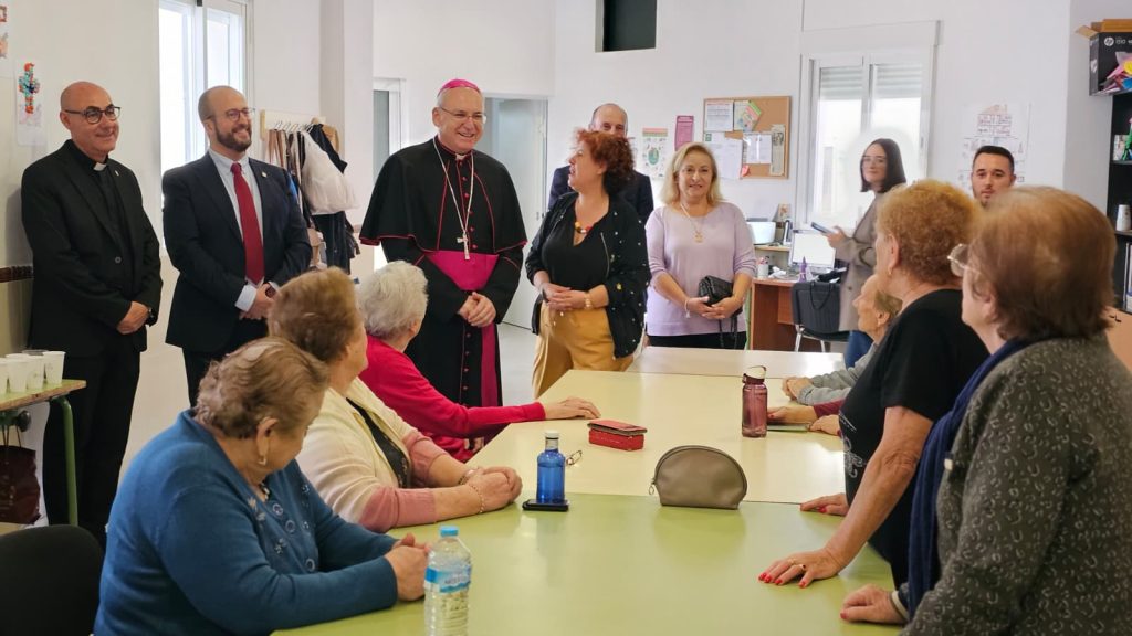 Brevemente, el Obispo se acercó a una realidad difícil pero santa: el Centro de Enfermos de Alzheimer, con sus usuarios, monitores y algunos familiares-cuidadores, que quisieron estar presentes en su visita. Don Sebastián valoró mucho el trabajo y esfuerzo de monitores, terapeutas y familiares con estos enfermos, a la vez que interactuó con los usuarios, preguntándoles y contándoles cosas de su propia familia. Un encuentro con el mundo del sufrimiento y el dolor, con la vulnerabilidad humana, que por la tarde se amplió en la visita a los enfermos en las casas, donde algunos de ellos se habían reunido haciendo un gran esfuerzo para encontrarse con el Prelado.