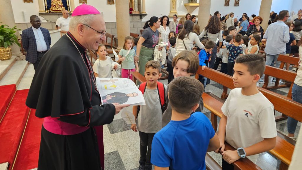 Don Sebastián les habló de los tres signos que el Obispo tiene como propios: la mitra, el anillo pastoral y el báculo, porque así los niños pueden identificarlo mejor. Acabaron festivamente cantando al amor de Dios y comprometiéndose a rezar unos por otros.