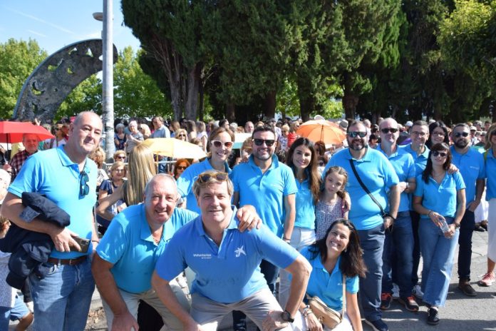 40 voluntarios de la fundación La Caixa se sumaron, este sábado, al Rosario Magno de la Esperanza. Lo hicieron llevando hasta la calle Virgen de la Cabeza a un numeroso grupo de personas mayores y otras con movilidad reducida para que pudieran participar de este gran acto mariano.