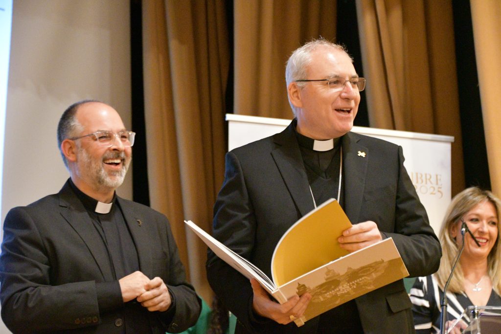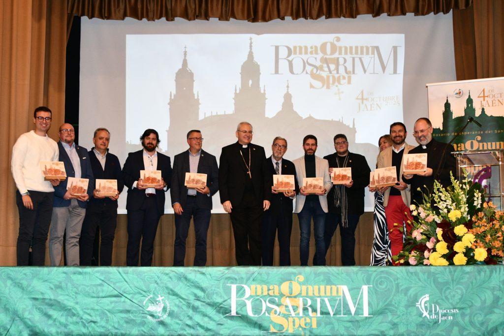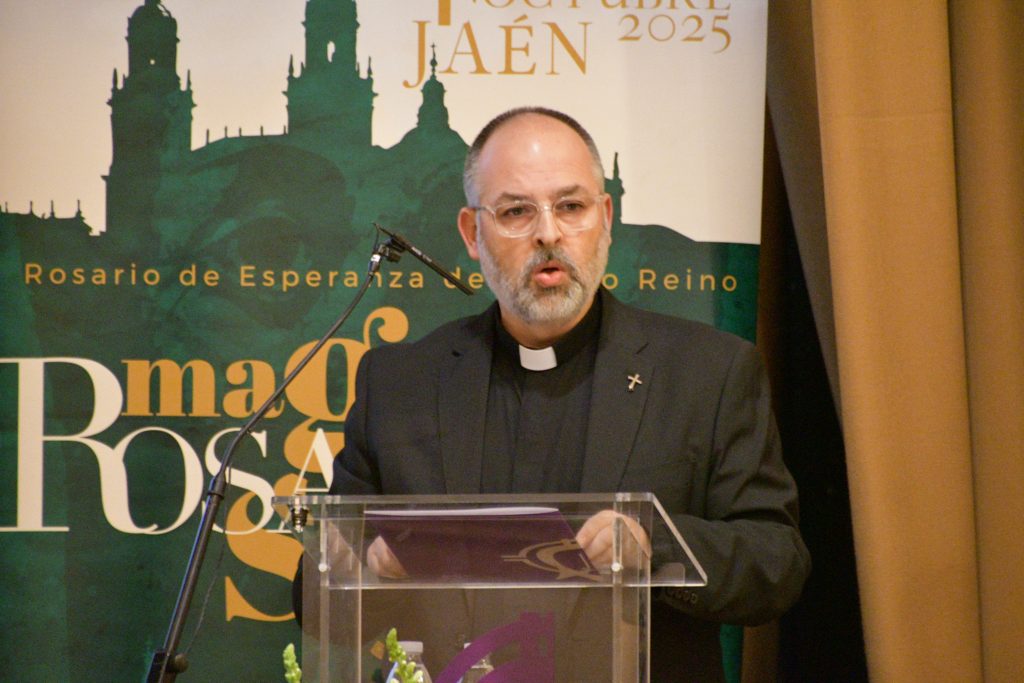 El primero en tomar la palabra fue el Presidente de la Comisión y Provicario General de la Diócesis, D. José Antonio Sánchez Ortiz. Recordar es una palabra que contiene un misterio. Viene del latín re-cordis, que significa literalmente “volver a pasar por el corazón”. Hoy queremos recordar así el 4 de octubre: no como quien repasa una fecha, sino como quien sostiene entre las manos un relato vivo. Un relato que vuelve a nuestro corazón para avivar lo mejor de nosotros y para revelar lo que Jaén es capaz de hacer cuando camina unida”. Para añadir, “El corazón de un pueblo creyente que se abrió a la gracia; el corazón de una diócesis que supo caminar unida; el corazón de Dios que, de algún modo, pasó por nuestras calles ofreciendo consuelo, belleza y esperanza. Por eso, al evocarlo, nace un agradecimiento que no se deja reducir a nombres ni a categorías, porque el Rosario Magno fue, ante todo, una obra de todos”.